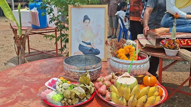 วันที่ 27 เม.ย.2569 ที่บ้านนารี ม.3 ต.ฝายหลวง อ.ลับแล จ.อุตรดิตถ์ ชาวบ้านทั้งภายในหมู่บ้านและต่างหมู่บ้าน ได้เดินทางมาร่วมพิธีทำบุญศาลปู่พญาแก้ว ซึ่งเป็นศาลบรรพชนหรือเจ้าที่เจ้าทางที่ปกปักรักษาคนในหมู่บ้าน คุ้มครองให้ผู้คนในชุมชนให้อยู่ร่มเย็นเป็นสุข