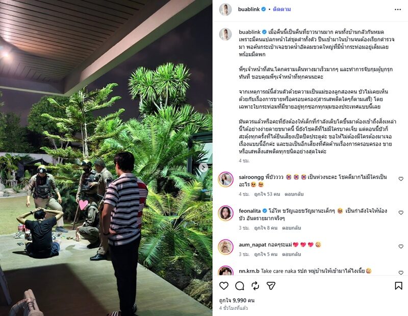 “มันควรแล้วหรือคะที่ยังต้องให้เด็กที่กำลังเติบโตขึ้นมาต้องเข้าถึงสิ่งเหล่านี้ได้อย่างง่ายดายขนาดนี้ นี่ยังโชคดีที่ไม่มีใครบาดเจ็บ แต่ตอนนี้บัวก็สะดุ้งทุกครั้งที่ได้ยินเสียงเปิดปิดประตูค่ะ ขอให้ไม่ต้องมีใครต้องมาเจอเรื่องแบบนี้อีกค่ะ และขอเป็นอีกเสียงที่คัดค้านเรื่องการครอบครอง ขายหรือเสพสิ่งเสพติดทุกชนิดอย่างสุดใจค่ะ” ท่ามกลางคอมเมนต์เข้ามาส่งกำลังใจ พร้อมทั้งบอกว่าน่ากลัวมากโชคดีที่ไม่มีใครเป็นอะไร