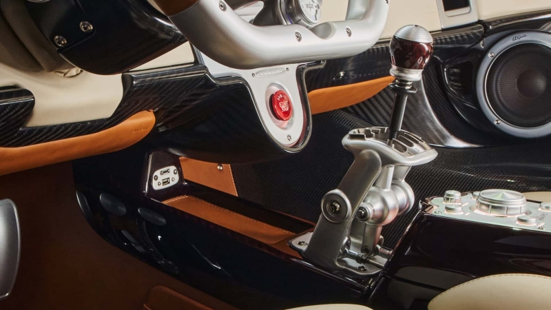 ภายในห้องโดยสาร Pagani ก็ดูสวยงามไม่แพ้รุ่นหลังคาแบบตายตัว คาร์บอนไฟเบอร์ หนัง และอลูมิเนียมปกคลุมแทบทุกตารางนิ้ว ระบบเกียร์ธรรมดา 7 สปีดแบบเปิดโล่งอันเป็นเอกลักษณ์ของ Utopia ยังคงใช้อยู่ และคันเกียร์เองก็มีคาร์บอนไฟเบอร์ขัดเงามาด้วย