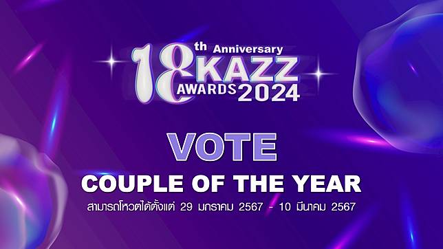 งานประกาศรางวัลครั้งยิ่งใหญ่ ครบรอบ 18 ปี KAZZ MAGAZINE ร่วมเป็นส่วนหนึ่งในการส่งกำลังใจเชียร์และสนับสนุนผลงานของศิลปินที่คุณชื่นชอบผ่านการโหวตได้ตั้งแต่วันนี้ - 10 มีนาคม 2567