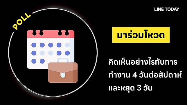ในยุคที่การทำงานและการใช้ชีวิตกำลังเปลี่ยนแปลงอย่างรวดเร็ว เราอยากรู้ความคิดเห็นของคุณเกี่ยวกับหากมีการเปลี่ยนแปลงไปเป็นการทำงาน 4 วันต่อสัปดาห์ และการหยุดพัก 3 วัน คุณมีความคิดเห็นอย่างไร?