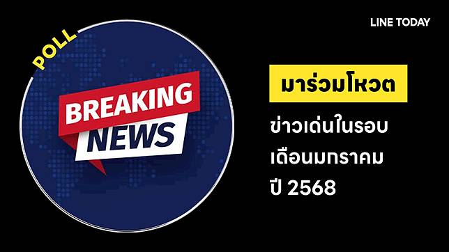 เชิญชวนชาว LINE TODAY ร่วมโหวต ข่าวเด่นประจำเดือนมกราคม ปี 2568 ข่าวไหนที่คุณคิดว่าเป็นกระแสร้อนแรงมากที่สุด (1 - 19 มกราคม 2568)