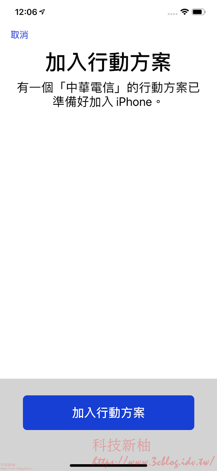 ▲ iPhone 會顯示有一個「中華電信」的行動方案準備加入,按下加入行動方案。