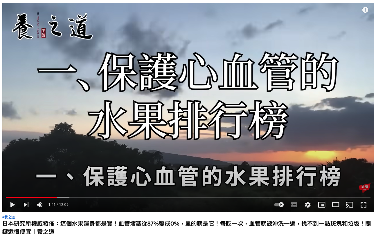 吃特定水果就能洗血管的影片內容?