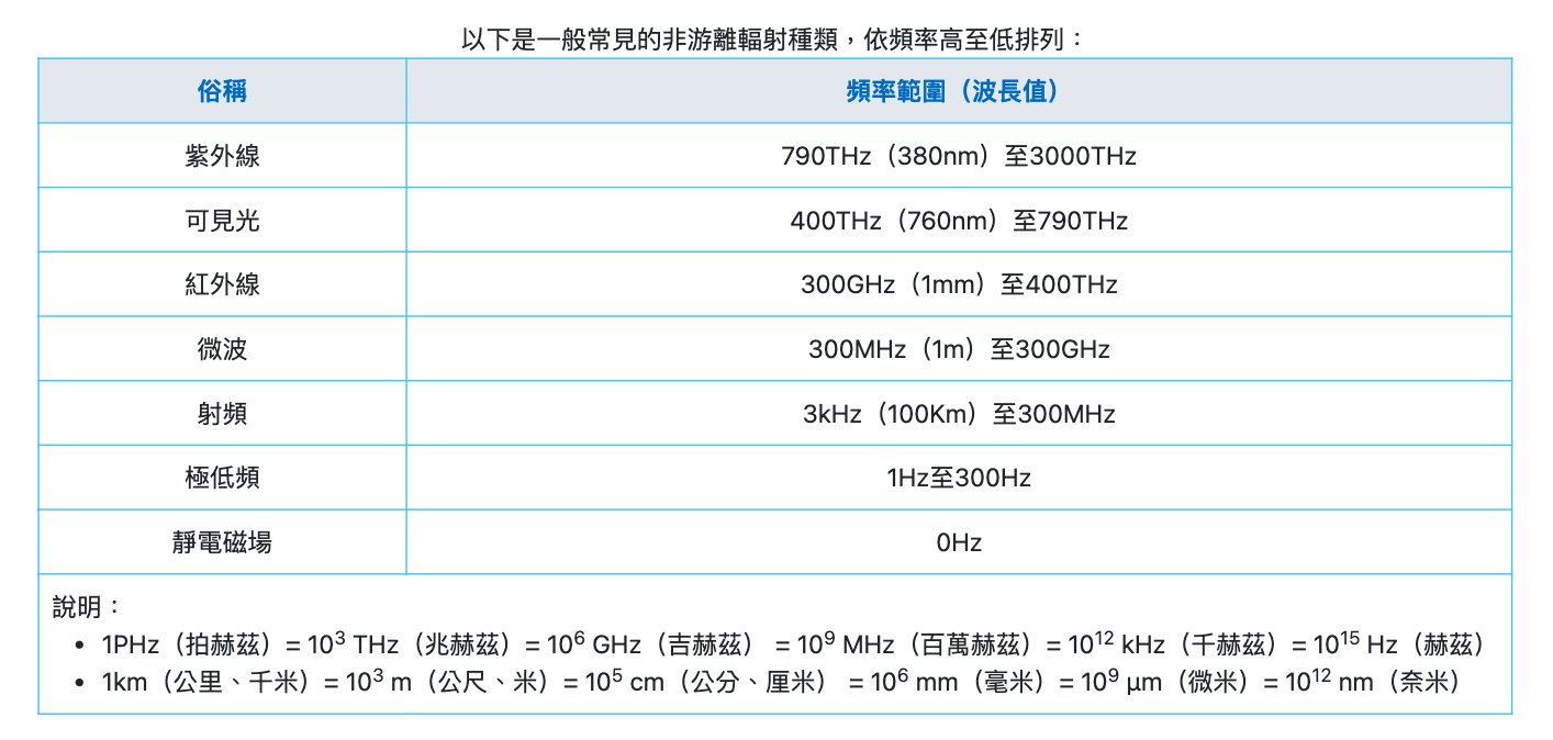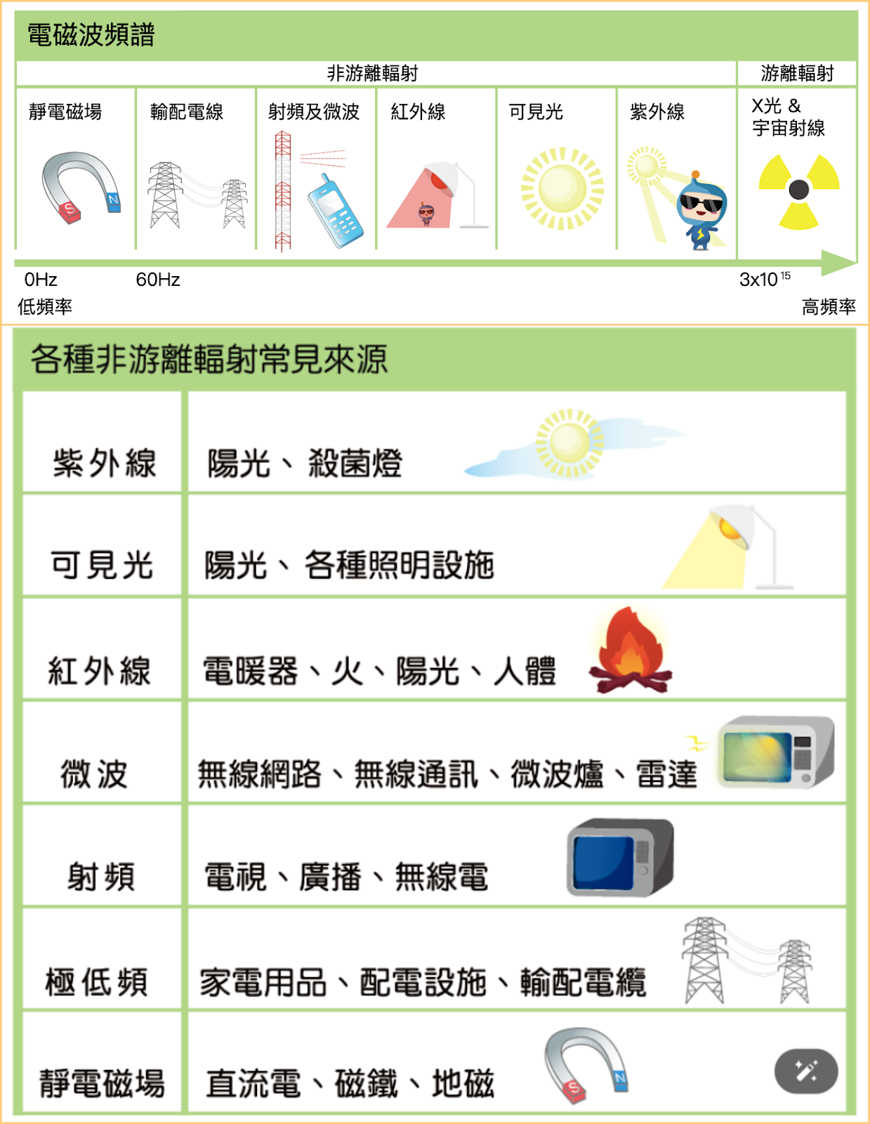 資料來源:環境部 「非屬原子能游離輻射管制網」基本知識:電磁波從哪裡來」