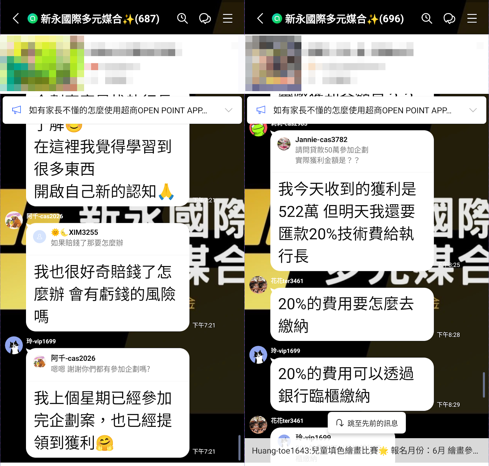 後續該不明個人帳號會引導你去另外加入像是「秘書」、「活動專員」的 LINE 帳號,並要求你再另外加入其他的 LINE 社群(LINE OpenChat),並等待審核通過。