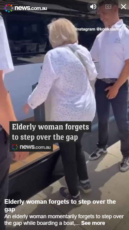 (一)透過影片反搜工具 InVID 分析網傳影片的關鍵畫面後進行搜尋,初步先查找到澳洲新聞網站《news.com.au》有報導此影片,不過沒有時間、地點等詳細資訊,只說這名年長的婦人在上船的時候忘記跨過間隙,因此跌倒,所幸人沒有大礙。