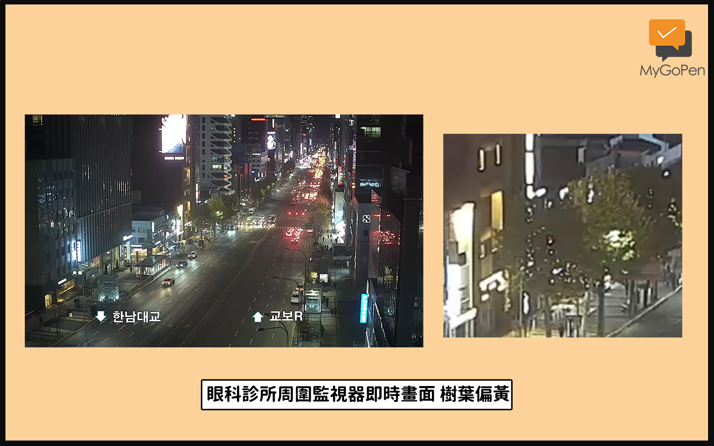 檢視地鐵站周圍的監視器即時畫面,可以發現這個地區的樹葉顏色偏黃,和網傳照片中的鮮綠明顯有差,可知照片二的拍攝時間應非近期。