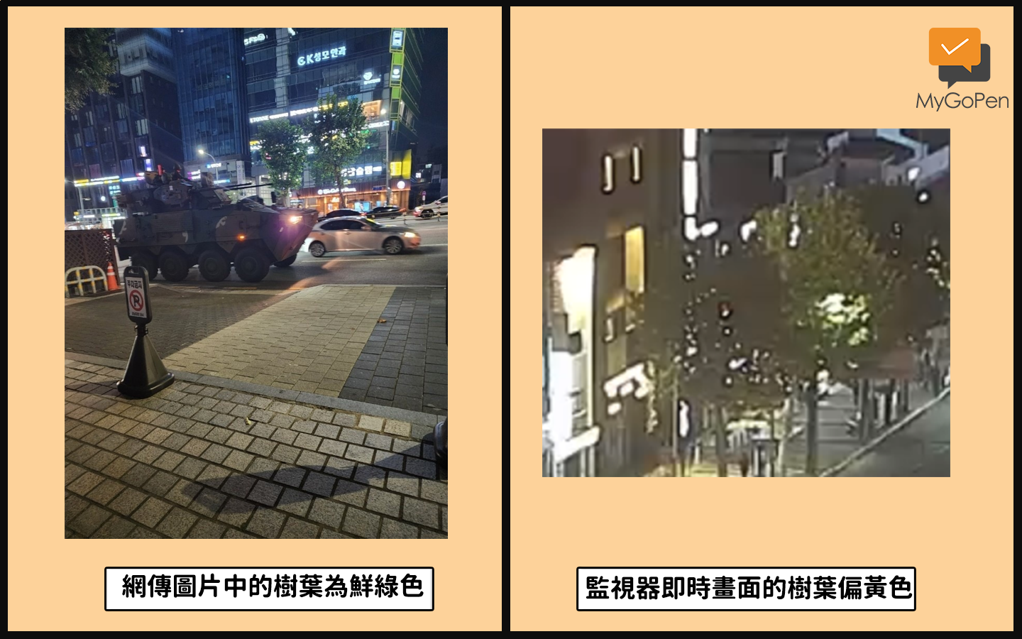 MyGoPen 實際向韓國法人團體「韓國言論振興財團」(한국언론진흥재단)求證,媒體振興室媒體教育組科長洪柱英(홍주영,暫譯)表示,韓國宣布戒嚴當晚的確動員了多架直升機,戒嚴部隊也封鎖了國會,但有派出坦克車的說法是假新聞。