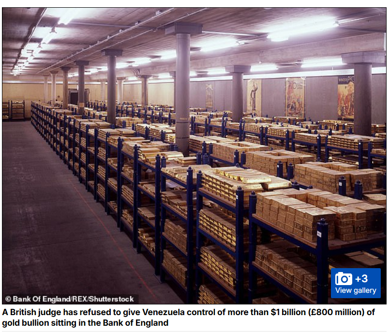 Daily Mail - British judge refuses to give Venezuela control of £800million of gold bullion sitting in the Bank of England because the UK does not recognise Nicolas Maduro as country's president