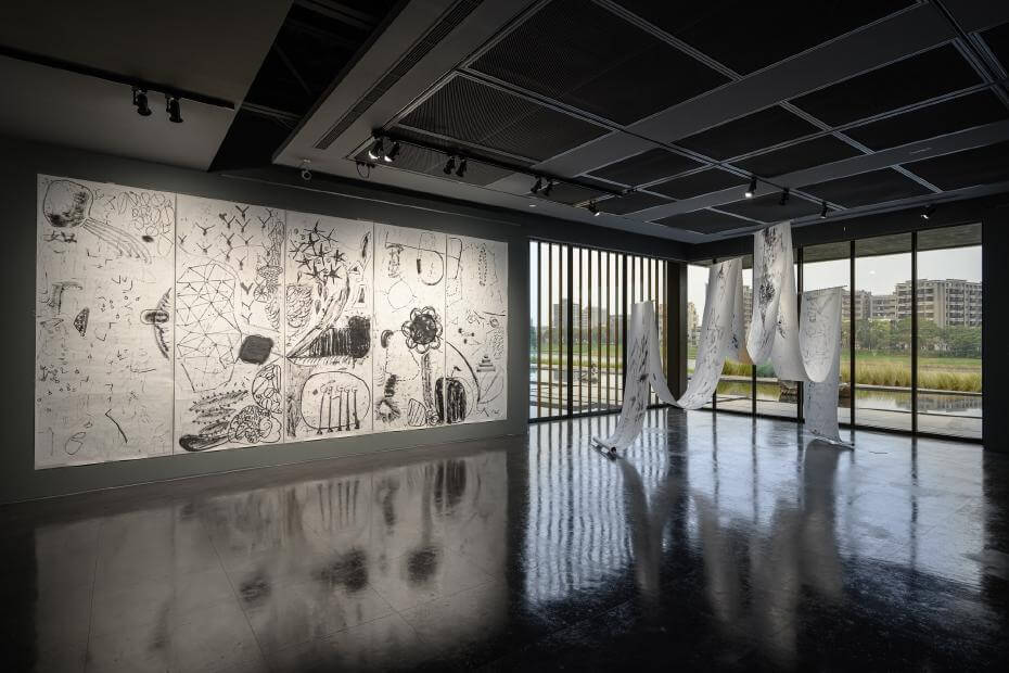 川尾朋子現場創作〈變/不變〉成為本展展出作品之一。攝影/李欣哲,圖片提供/桃園市立美術館