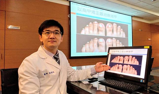 【勁報記者于郁金/連凱斐/臺南報導】捲甲,指的是指甲的彎曲程度相較於一般人明顯增加,常常發生在雙腳大拇趾,也可能出現在所有的手指和腳趾;病人長時間行走後,或發生捲甲的指甲受到壓迫時,往往會感到疼痛;嵌甲,又稱「凍甲」,指的是指甲嵌入指甲旁的甲肉,造成發炎、疼痛,甚至是感染化膿,病人常常因此痛到改變行走姿勢,甚至因會壓迫到發炎感染的甲肉而不能穿襪子、鞋子等。