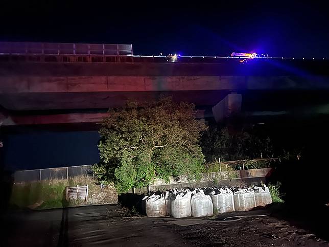 國道3號南下148公里苗栗通霄路段21日晚間發生有男 子從10多公尺高橋上墜落事件,所幸有樹木、草叢緩 衝,男子被發現時意識清楚,右大腿疑似骨折、全身 多處擦傷,送醫治療。 (民眾提供) 中央社記者管瑞平傳真 111年9月21日