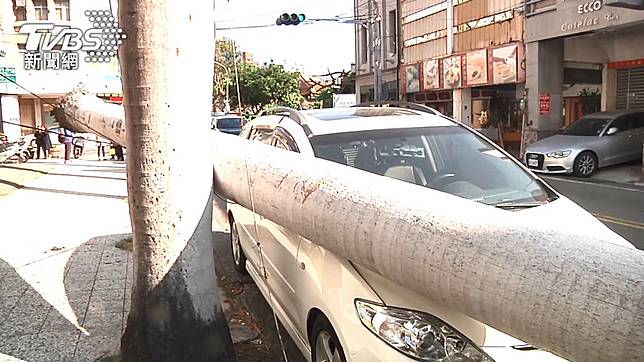 碰!大王椰子樹不敵強風 傾倒砸中車