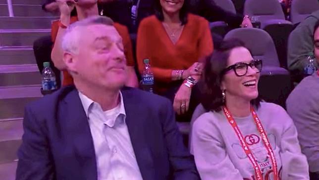 潔咪葛茲(Jami Gertz)與老公安東尼瑞斯勒(Antony Ressler)。翻攝自Atlanta Hawks臉書影片