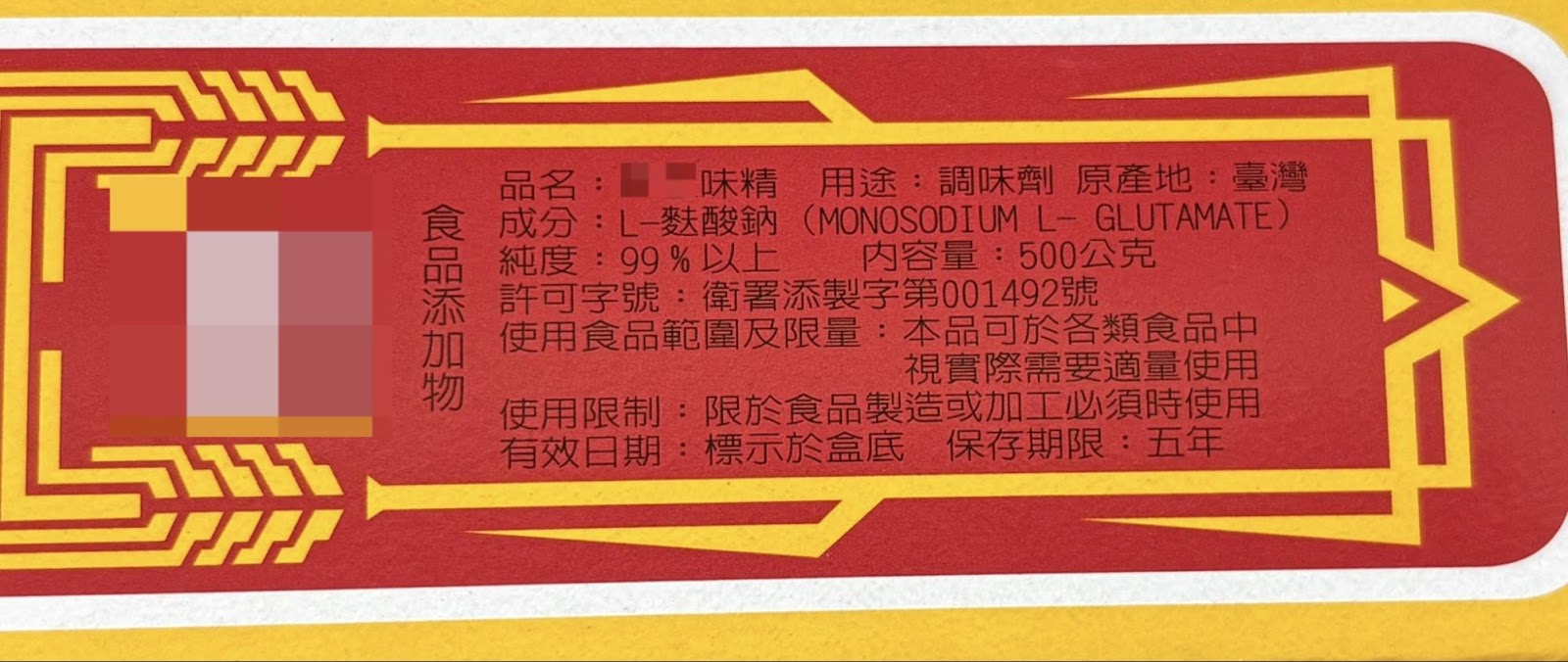 MyGoPen 訪查市售味精,以最常見的紅黃紙盒外包裝的味精為例,成分的欄位為「L - 麩酸鈉」,後面括號寫有MONOSODIUM L-GLUTAMATE,傳言說一半 L-Glutamine、一半 D-Glutamine,與產品標示不同,傳言說法應為錯誤。