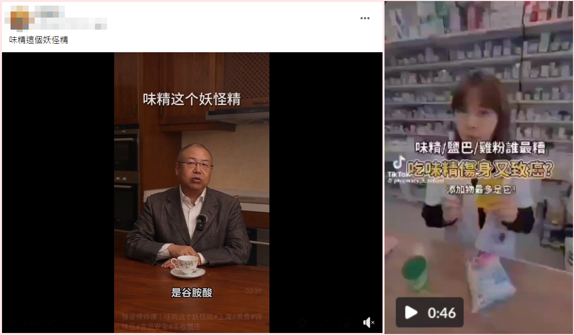 網傳「致癌食物名單」、「味精、鹽巴、雞粉誰最糟」、「味精這個妖怪精」等貼文及影片。但是從主管機關公開闢謠及專家表示可知,味精是從甘蔗、甜菜、樹薯或玉米等天然食物中發酵提煉,60 年代雖開始傳出「味精症候群」,但近年來包括美國 FDA 都已於官網公開表示「始終無法證實味精是否是導致這些症狀的原因」,網傳訊息內容易造成誤解。