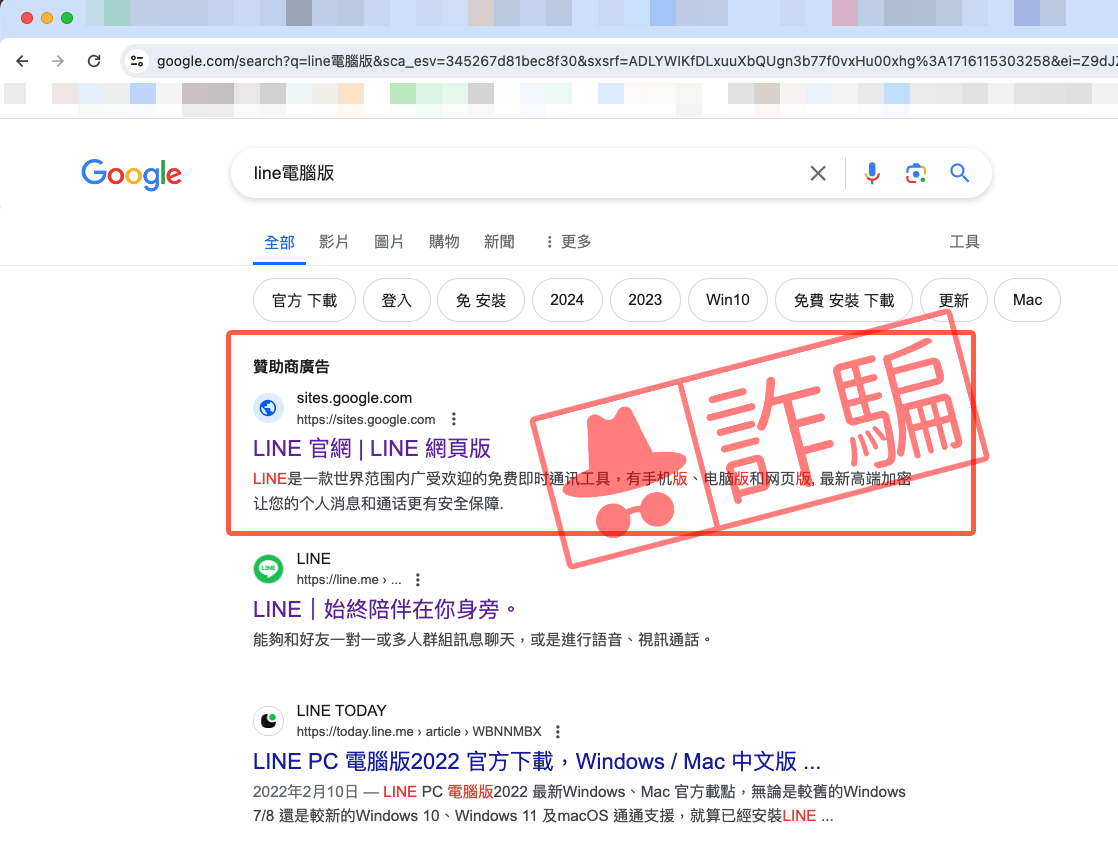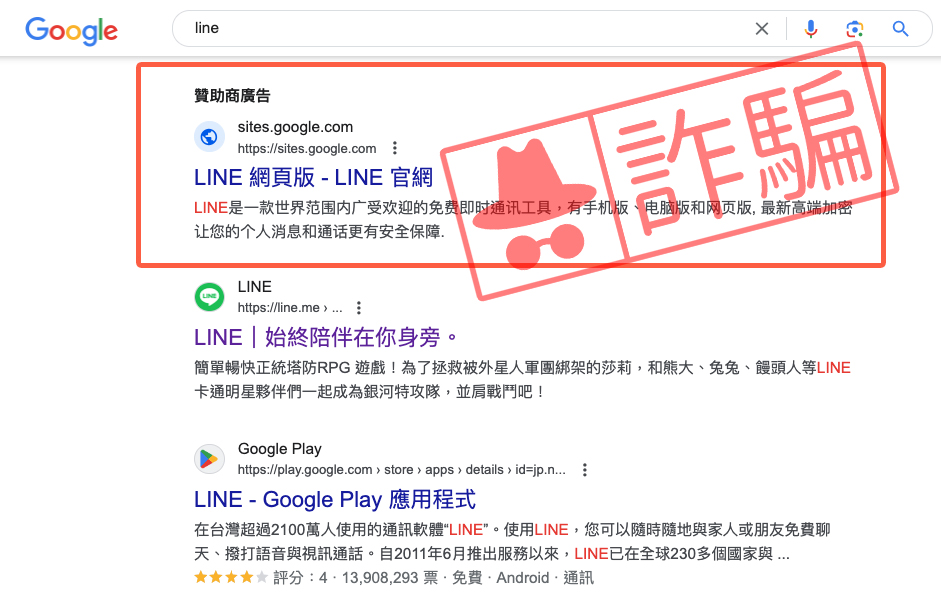 【詐騙】山寨LINE官方網站還下Google廣告!切勿點選不明網址、填帳號密碼或下載資料