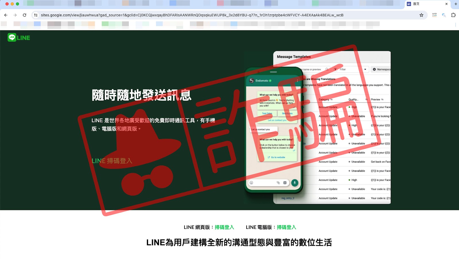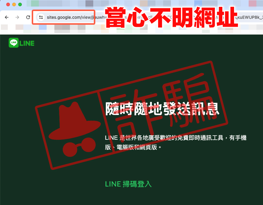 山寨 LINE 官網的詐騙手法