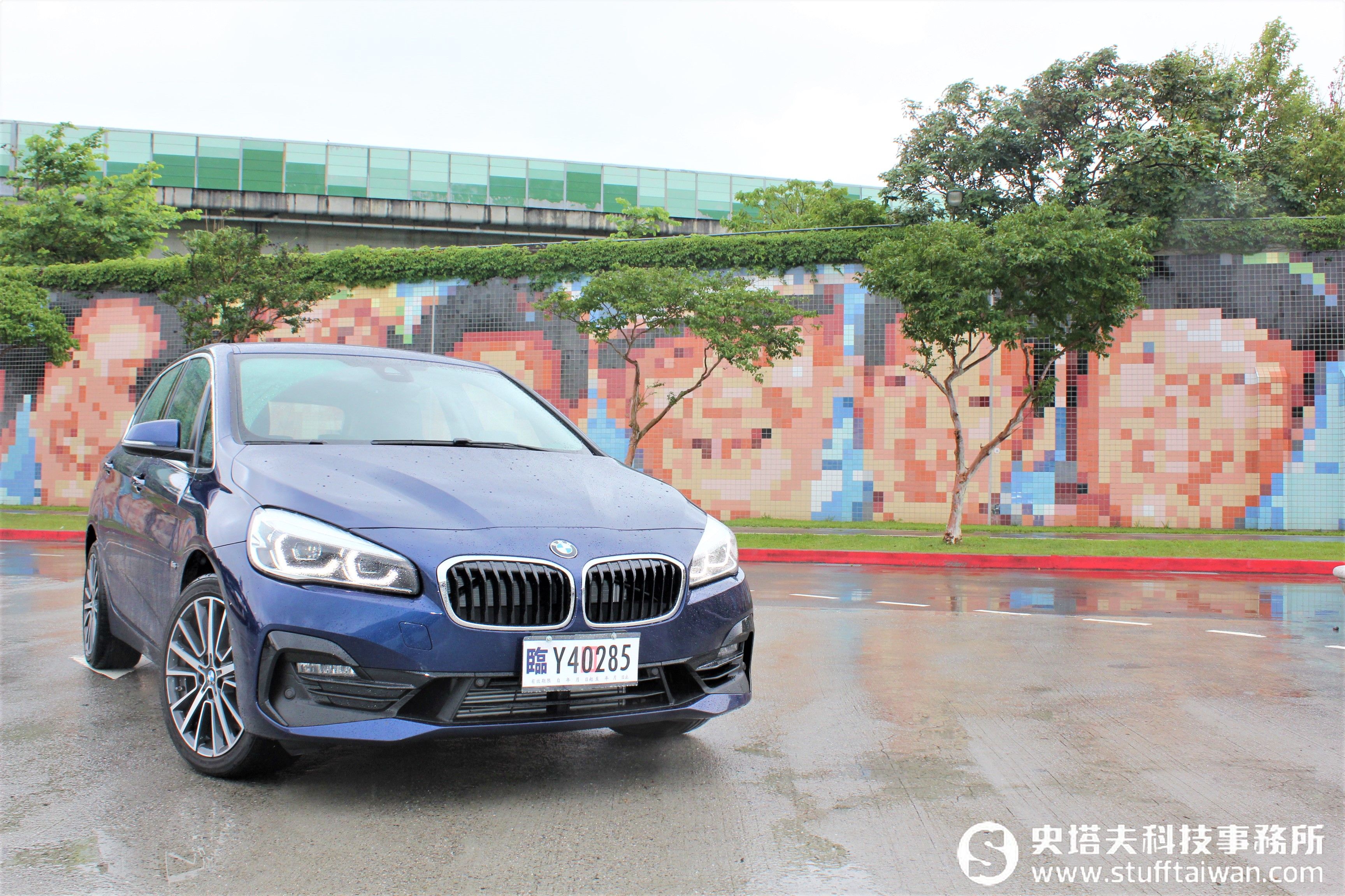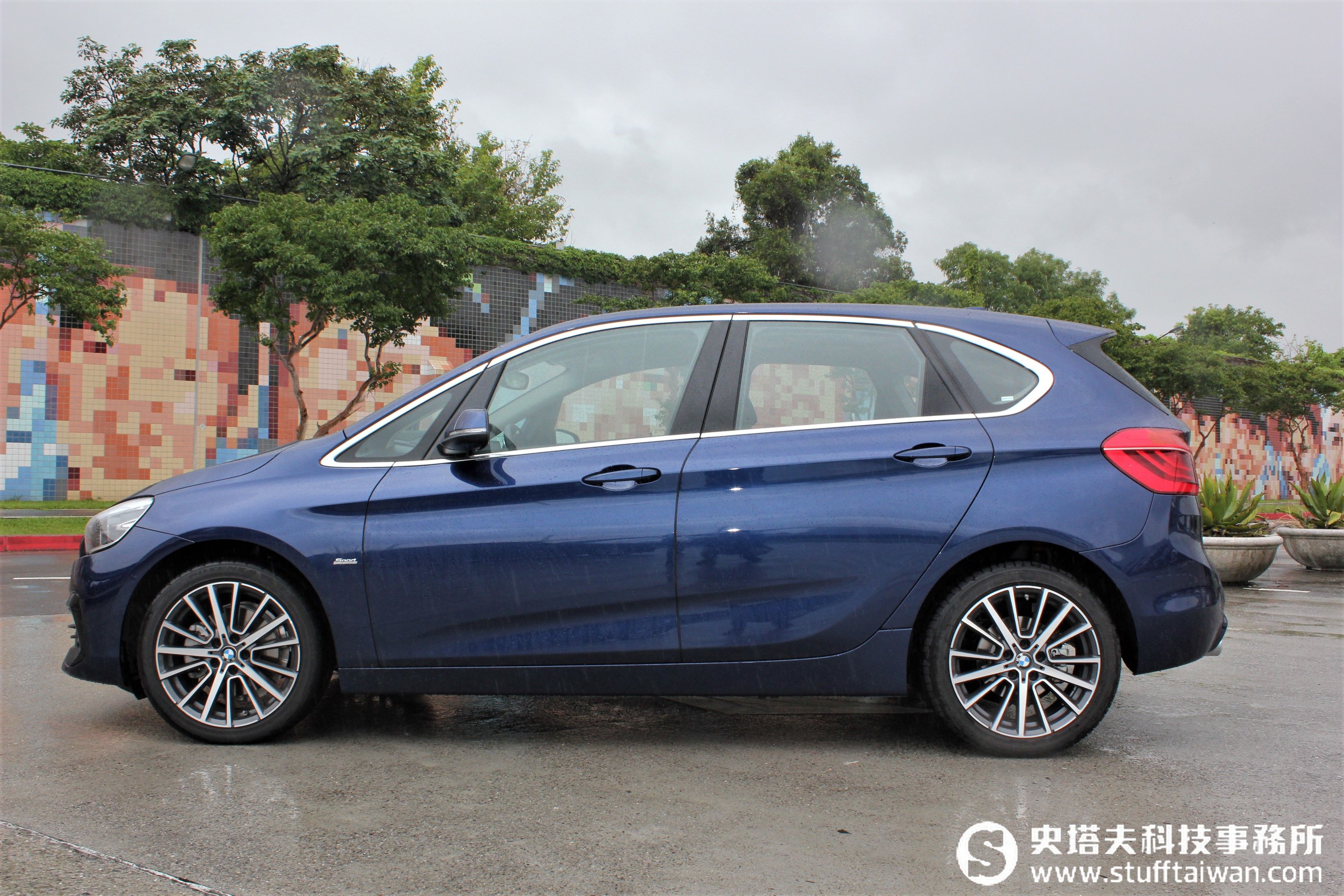 雖然在我們與BMW Active Tourer見面的當天,北台灣一波鋒面雨下個不停,但依舊澆不熄它全身散發出來的活力(尤其是藍色款更是心頭好),尤其是看起來似乎有那麼一些不同,原來是這部車搭配了Sport Line風格套件,運動感可說是滿點。