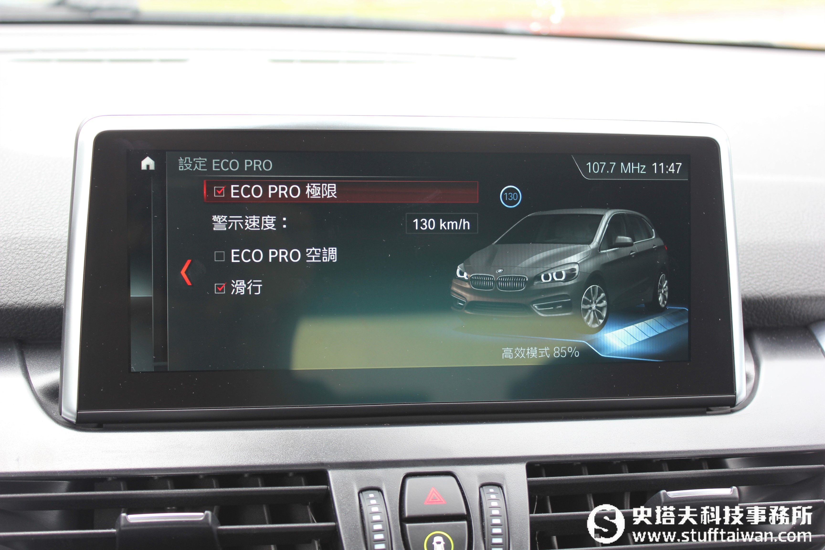 而這部車開來感覺相當平穩,難道它只是披上運動套件的好爸爸專車?當然不是只有這麼簡單,原來是因為在空調控制系統下方,有個動態行車模式切換按鈕,具有Comfort、Sport、ECO Pro三種模式,原來剛剛是在Comfort模式,當想要飆一下時,只要調整到Sport模式,引擎和油門反應就會變得不同,加速也變得更猛一些。