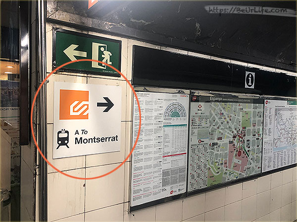 當你搭地鐵來到 Pl Espanya 站時,請找 FGC 的符號 (像下面的橘色 mark )