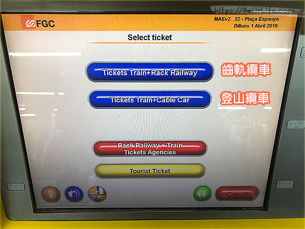 但是,你透過自動售票機的話,那就是 Rack Rail 和 Cable Car 都可以選擇哦 ~ 我們就來看一下,如何購買呢 ~