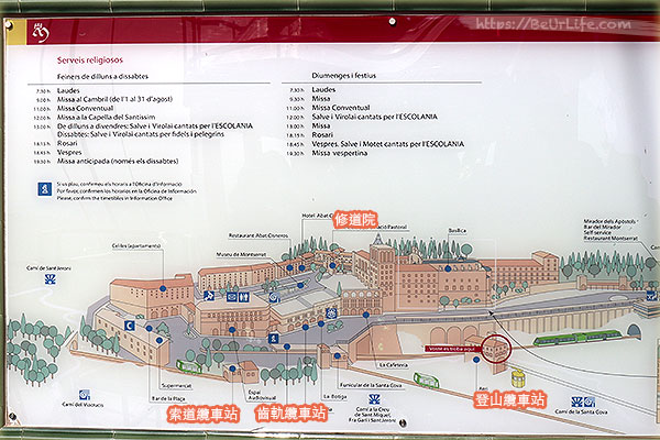 如果是搭齒軌纜車 (Cremallera Rack Rail),則是坐到下一站的 Monistrol de Montserrat 站