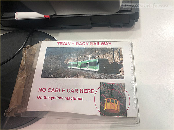 如果你是跟車站櫃台購買的話,那你只能買齒軌纜車 (Rack Rail),因為櫃台上就直接貼了這一張紙