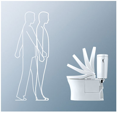 只要你走到馬桶的前面,噹噹 ~ 馬桶蓋就會自動掀起迎接你的到來