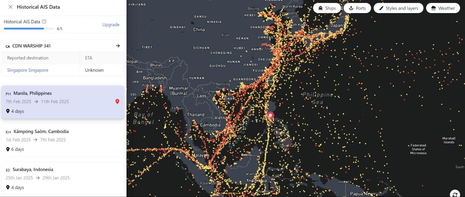 上述資訊,大致為渥太華號在南海行動的歷程。公開資料顯示,該艦於 1 月 13 日即抵達新加坡停泊,隨後又前往印尼泗水柬埔寨施亞努市菲律賓馬尼拉等地。