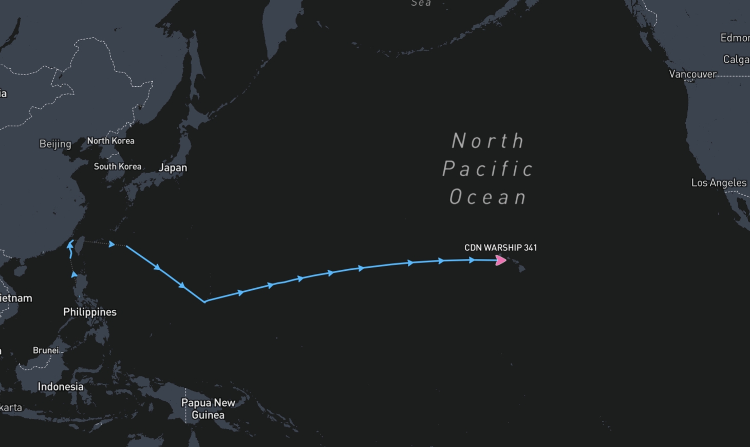 中華民國外交部發布新聞稿,提到渥太華號於 2 月 16 日通過台灣海峽。根據Maritime Optima網站公布的航線圖,渥太華號穿越台灣海峽後,往東抵達關島,隨後前往夏威夷,截至本次查核報告上架前,該艘軍艦仍顯是在夏威夷停留。