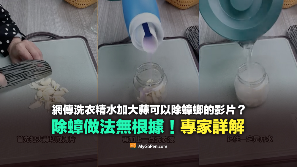 MyGoPen 致電諮詢臺灣大學昆蟲學系名譽教授徐爾烈,他表示傳言提到「大蒜片加洗衣精加水,噴在廚房角落、家裡一年沒蟑螂」是錯誤資訊,蟑螂的身體表面有一層油膜,如果只是噴水的話,蟑螂甩一下就甩掉了,但如果把洗衣精加水、直接噴灑在蟑螂的身上,蟑螂是會死掉的,因為包括蟑螂在內的昆蟲呼吸要靠氣孔,氣孔被堵住了、就會窒息而死,並不需要將洗衣精水打出泡泡,洗衣精的成分本身就可以堵住蟑螂的氣孔。