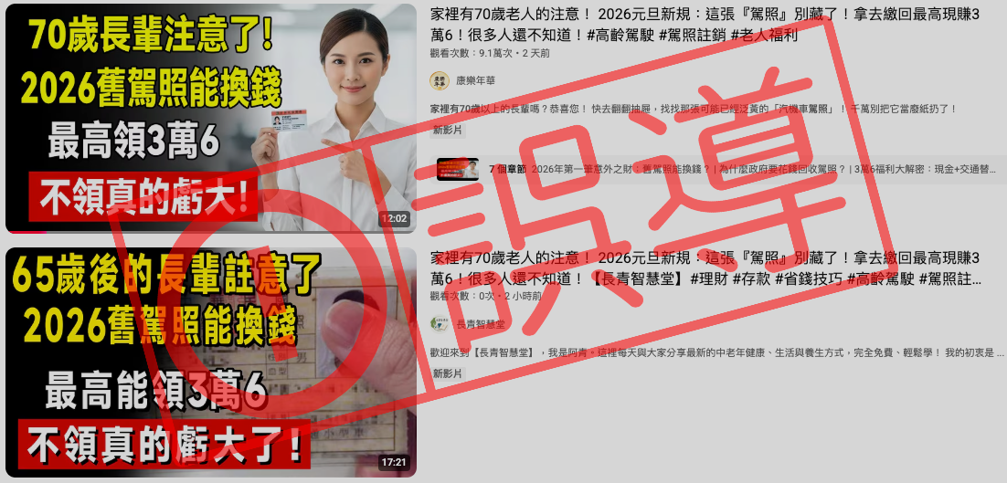 【誤導】2026元旦新規?老人駕照繳回最高現賺3萬6?當心不明影片資訊!政策詳解