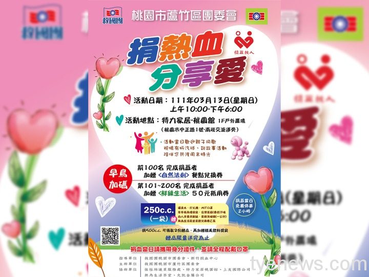 蘆竹挽袖捐血分享愛 3/13相約與你做公益