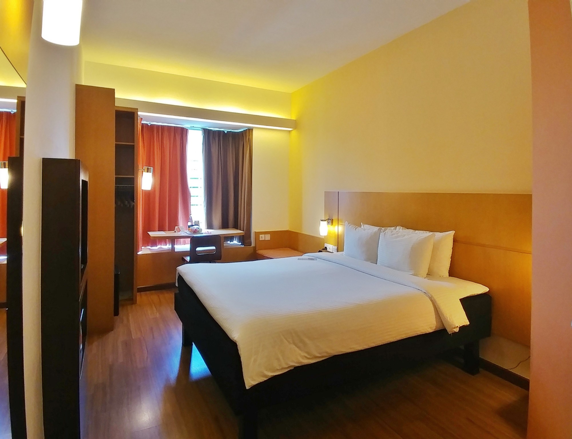 房間設計不多,但還是有一張桌子,而 Ibis 的桌子並沒有像日式酒店那樣,希望對著牆,而是喜歡把它對著窗戶,這樣在桌子工作的時候也會比較愉快。