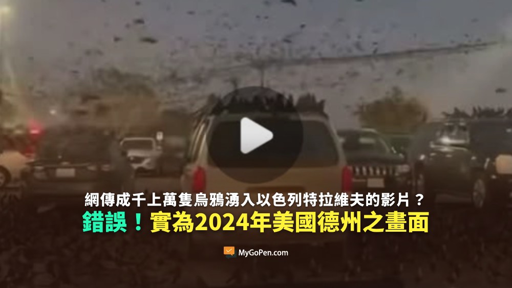 【錯誤】成千上萬隻烏鴉湧入以色列特拉維夫的影片?挪用2024年美國德州之畫面