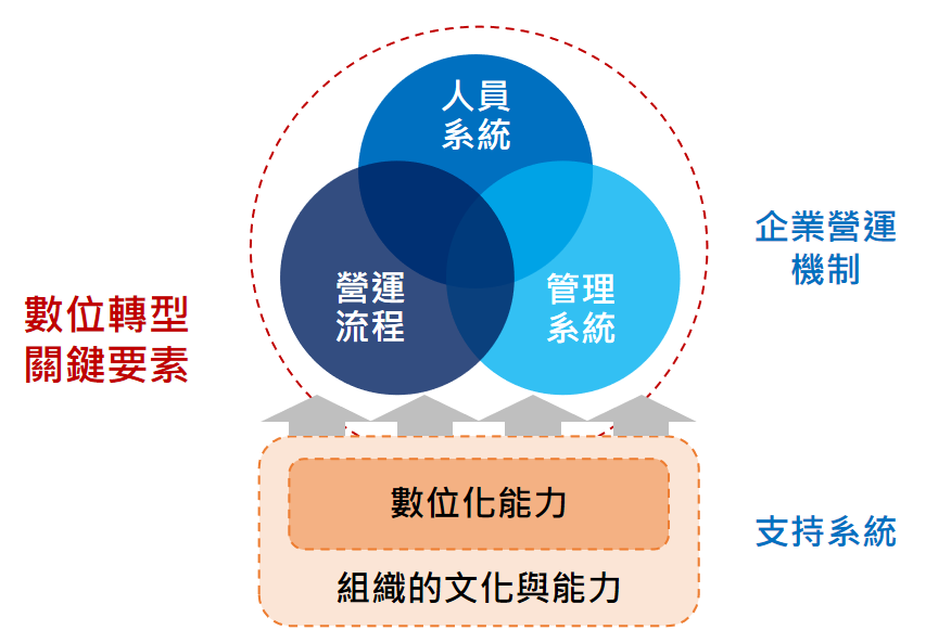 組織的文化與能力是軟實力,也是數位轉型最主要的根基,組織文化和人員能力的支撐力越紮實,轉型成功的機會越高。