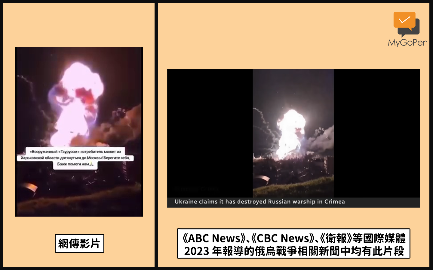 綜合上述媒體報導,當時烏克蘭軍方表示,在 2023 年 12 月 26 日摧毀了一艘停在克里米亞港口的俄羅斯海軍登陸艦,是俄羅斯最大的兩棲戰艦之一;不過,俄羅斯方面則稱,軍艦只是受損,並沒有被摧毀。而網傳影片就是俄國軍艦被襲擊的畫面。