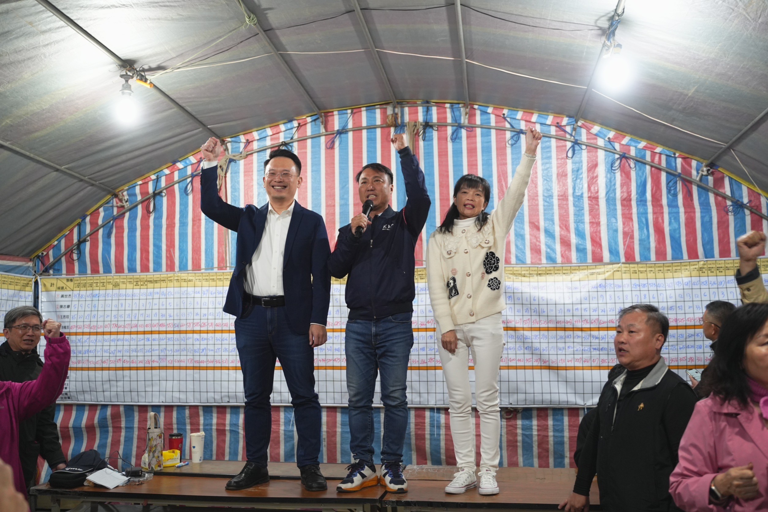 第16任總統、副總統及第11屆立法委員選舉今(13)日登場,桃園市第二選區立委藍綠對決,開票結果出爐,市議員涂權吉擊敗對手黃世杰,已在剛剛自行宣布當選,副市長蘇浚賓也到場表示祝賀。