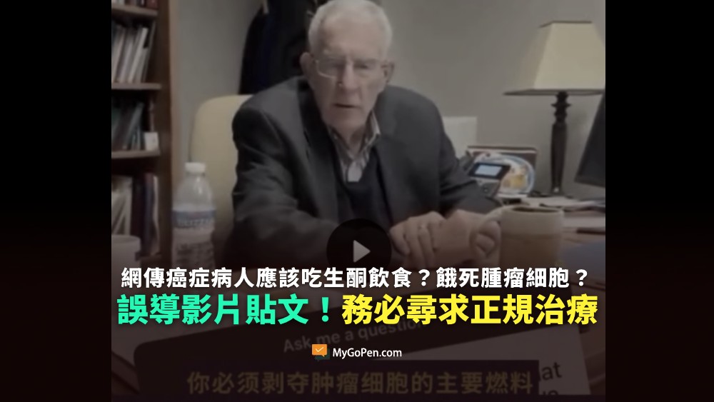 【查證】網傳癌症病人應該吃生酮飲食?餓死腫瘤細胞?誤導影片貼文!務必尋求正規治療