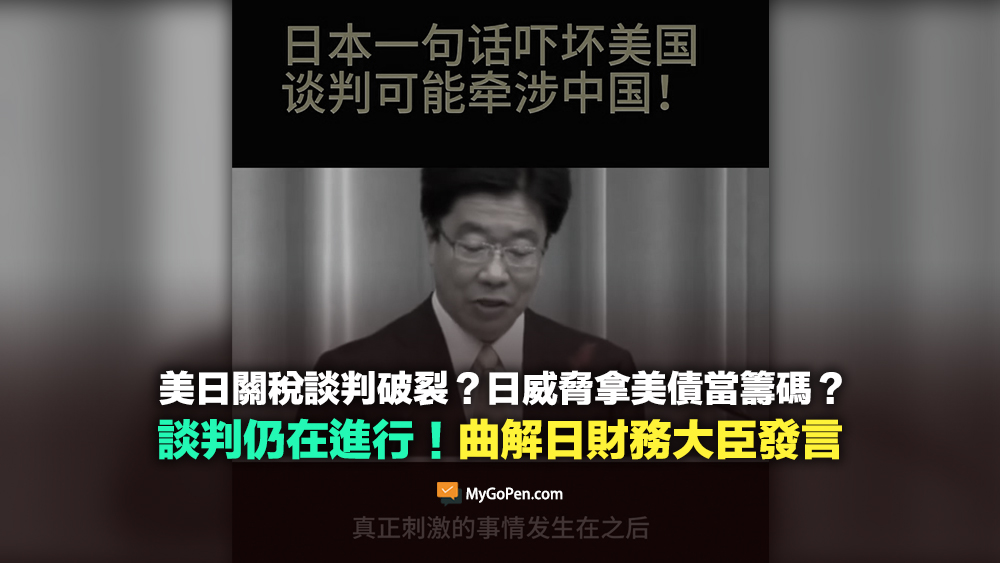 【錯誤】美日關稅談判破裂?日威脅拿美債當籌碼?曲解日財務大臣發言