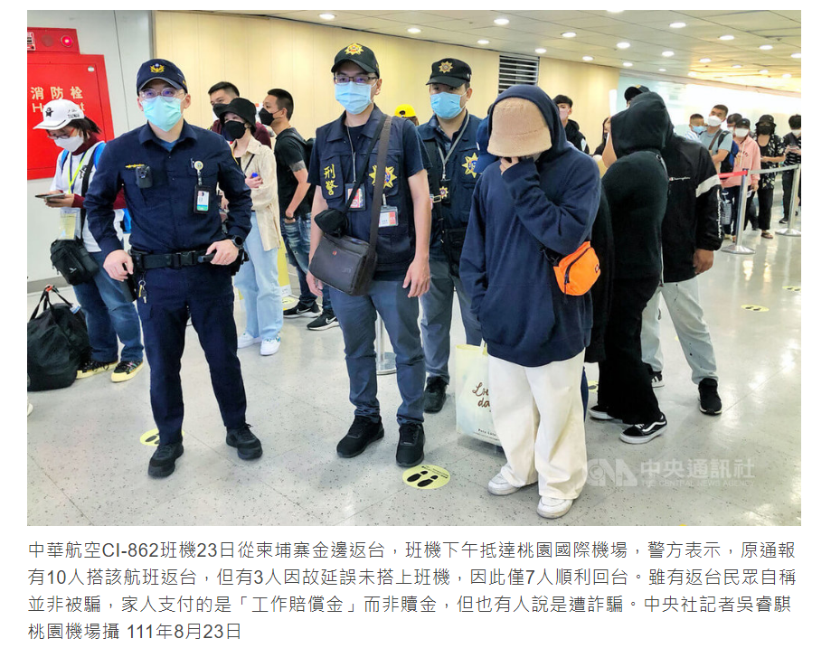 中央社 - 疑落入柬埔寨工作陷阱 7人支付賠償金後返台