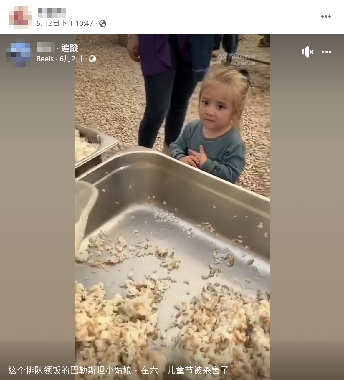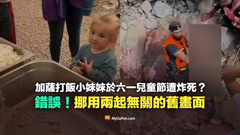 【錯誤】加薩打飯小妹妹於六一兒童節遭炸死?挪用兩起無關舊畫面