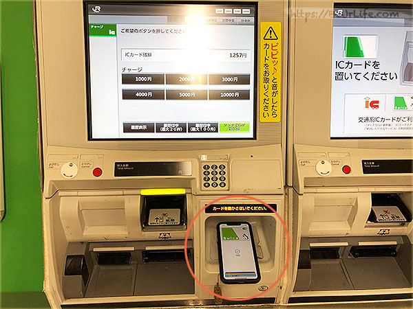 另外,為了因應手機也可以內建 Suica,所以在 JR 車站的加值機 (Charge) 也有可以放得下手機的新機種出來