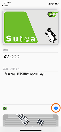 你只要在錢包 APP 中 (不是Suica APP哦),點擊 Suica 西瓜卡,可以看到右下角有一個 … 的符號