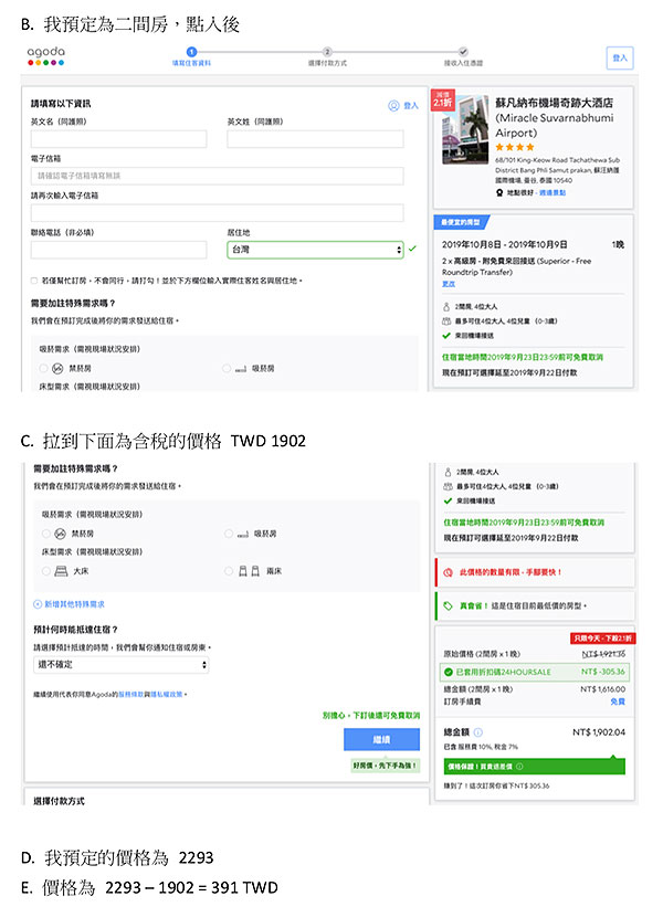 3) 點進去房型後最終價格 (因為客服要看到的是含稅/服務費的最終價格,所以你一定要點進去才有最後價格)