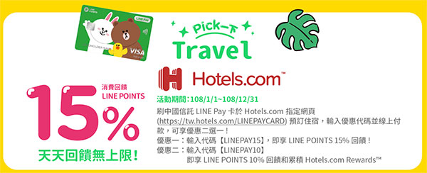 那就是今年度被稱為 Hotels.com 聯名卡的中國信託 LINE Pay卡 [活動連結]