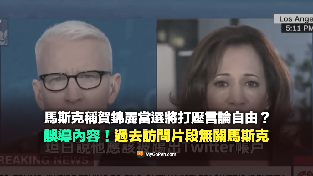 【錯誤】網傳馬斯克稱賀錦麗當選將失言論自由?挪用過去無關訪問片段
