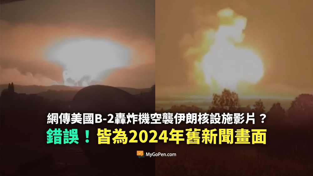 【錯誤】網傳美國B-2轟炸機空襲伊朗核設施影片?挪用2024年舊新聞畫面